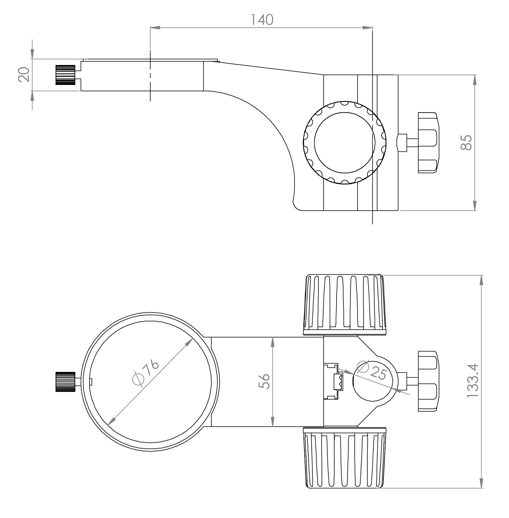 型號名稱:SF1升降組 說明: ● 調焦手輪松緊可調整,確保長期使用可靠 ● 立柱安裝孔直徑Φ 25mm ,鏡體安裝孔直徑Φ 76mm , 兩孔中心距 140mm