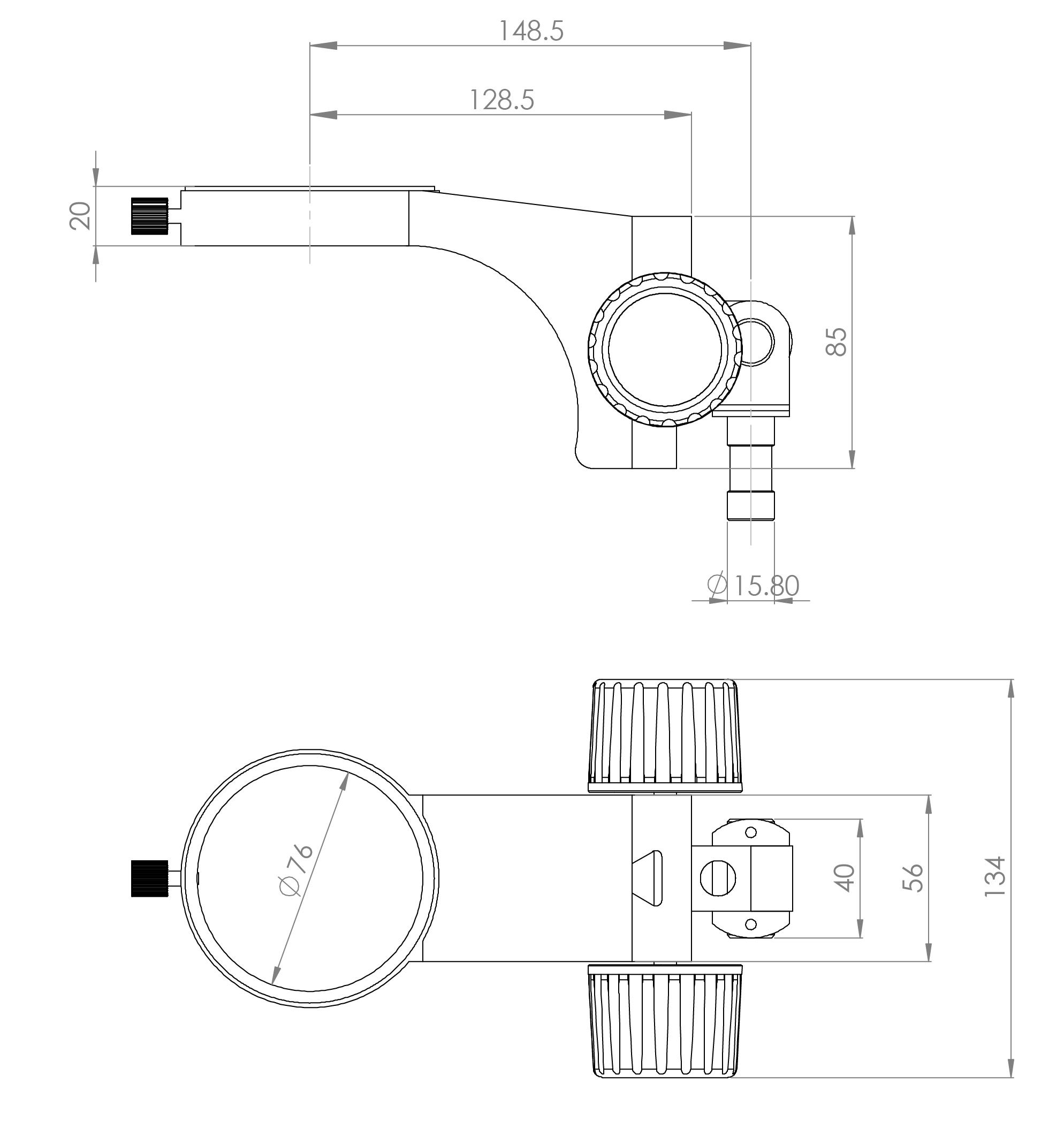 型號名稱:SF3升降組 說明: ● 帶有工業綁定機構的升降組,可任意角度觀察物體 ● 連接桿直徑Φ15.8 mm ,鏡體安裝孔直徑Φ 76mm .