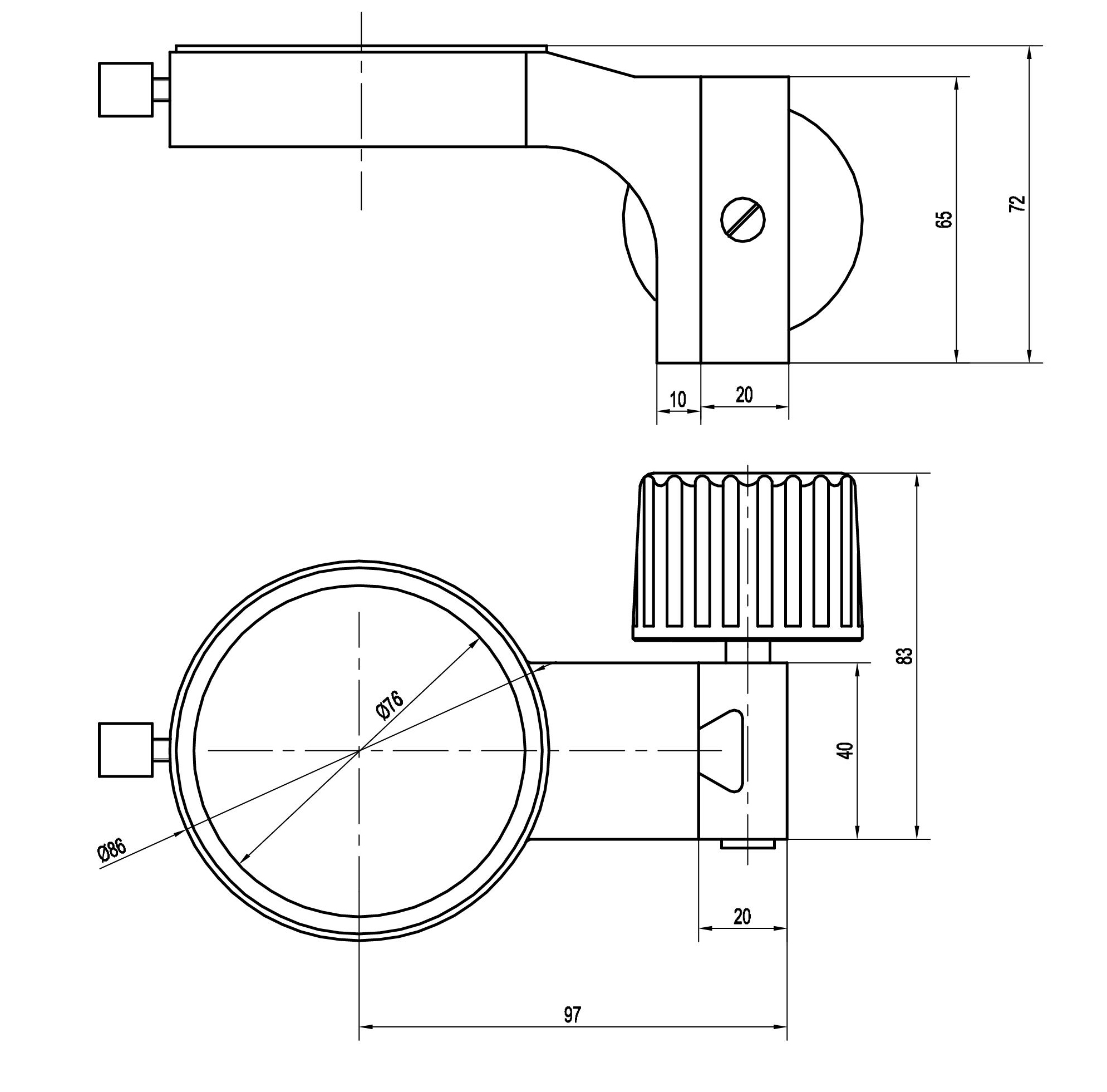 型號名稱:SF4升降組 說明: ● 單手輪升降調節 ● 鏡體安裝孔直徑Φ 76mm