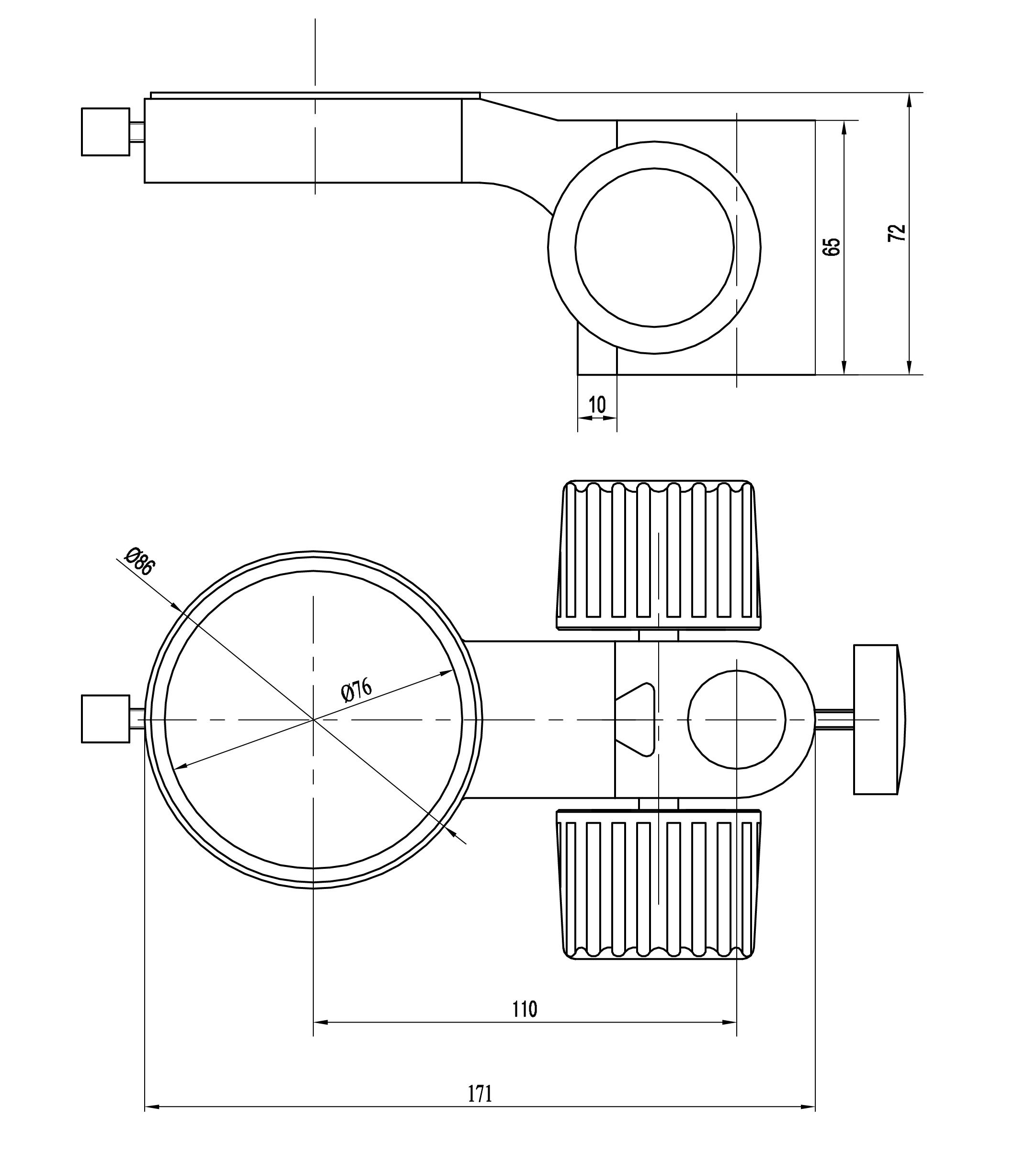 型號名稱:SF7升降組 說明: ● 金屬燕尾滑塊,立柱安裝孔直徑Φ 25mm ● 鏡體安裝孔直徑Φ 76mm ,兩孔中心距 110mm