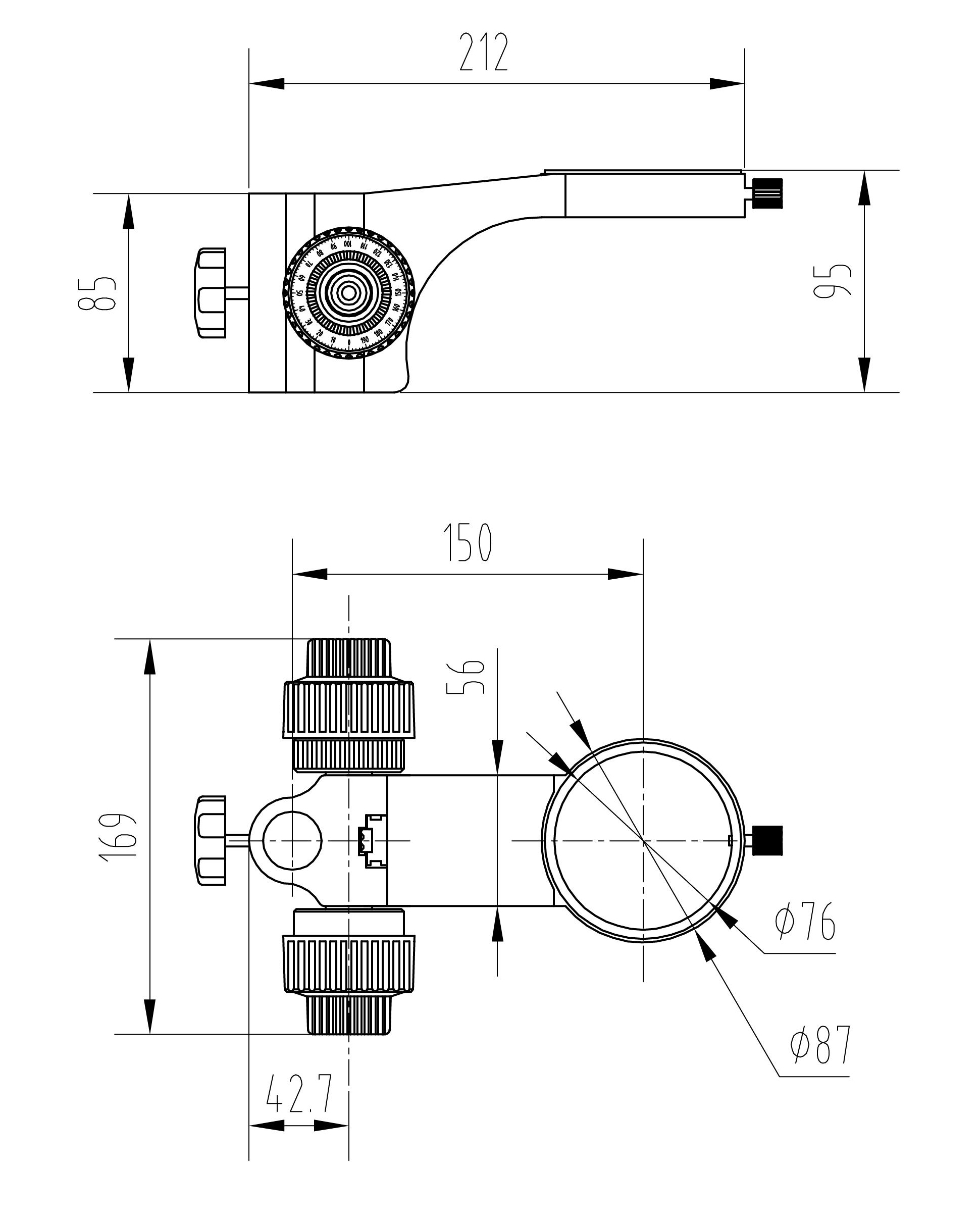 型號名稱:SF2升降組 說明: ● 帶有工業綁定機構的升降組 ● 鏡體安裝孔直徑Φ 76mm
