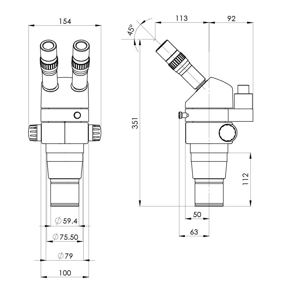 雙目頭目鏡筒傾斜45°